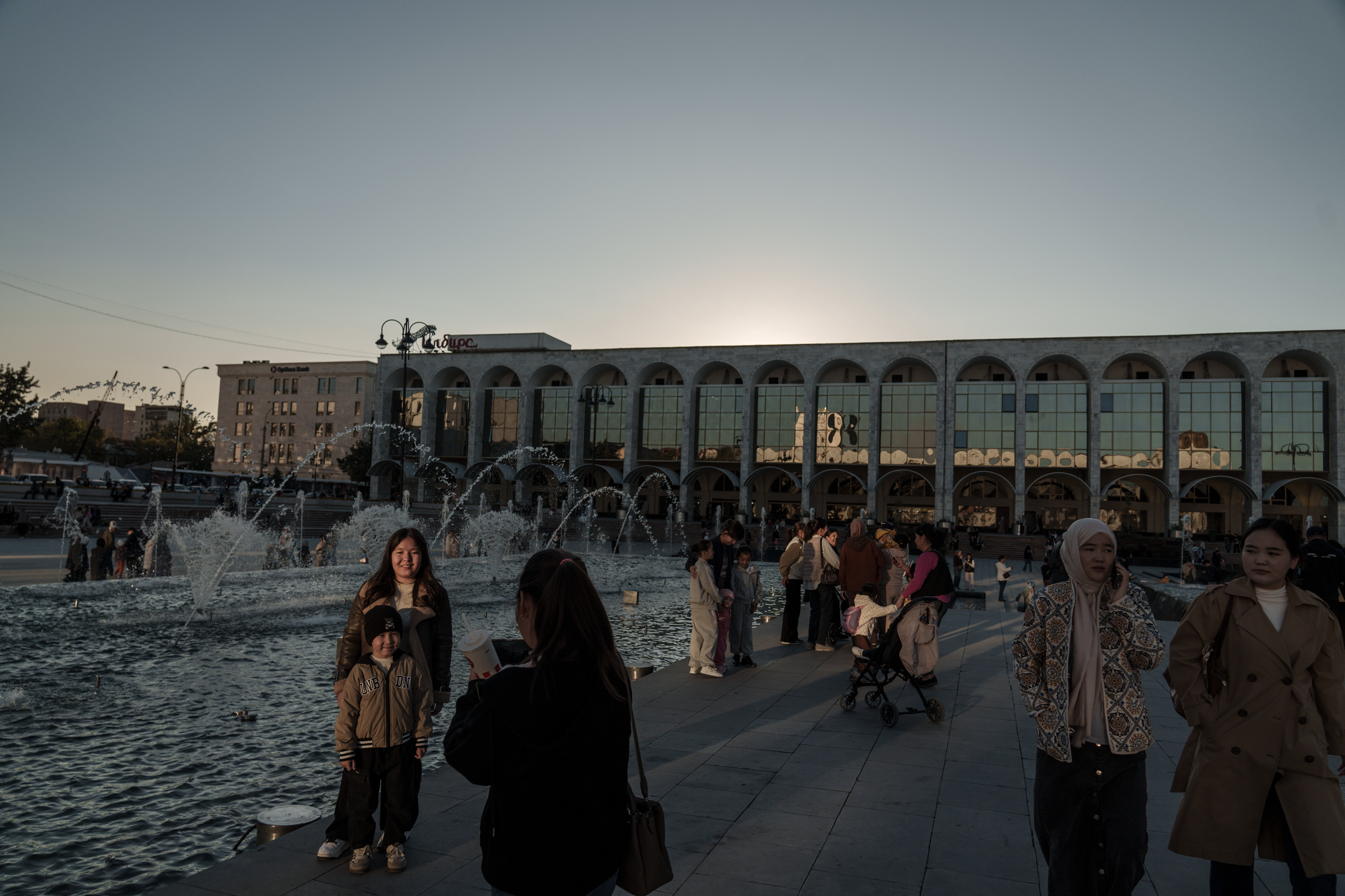 Het Bruiloftspaleis, gebouwd in de Sovjettijd, maar nog steeds in gebruik. Onder het communistische bewind waren alle openbare uitingen van religie in Bisjkek verboden, dus er waren geen moskeeën of kerken voor huwelijksceremonies. Het huwelijkspaleis was een compromis van de Sovjetautoriteiten.