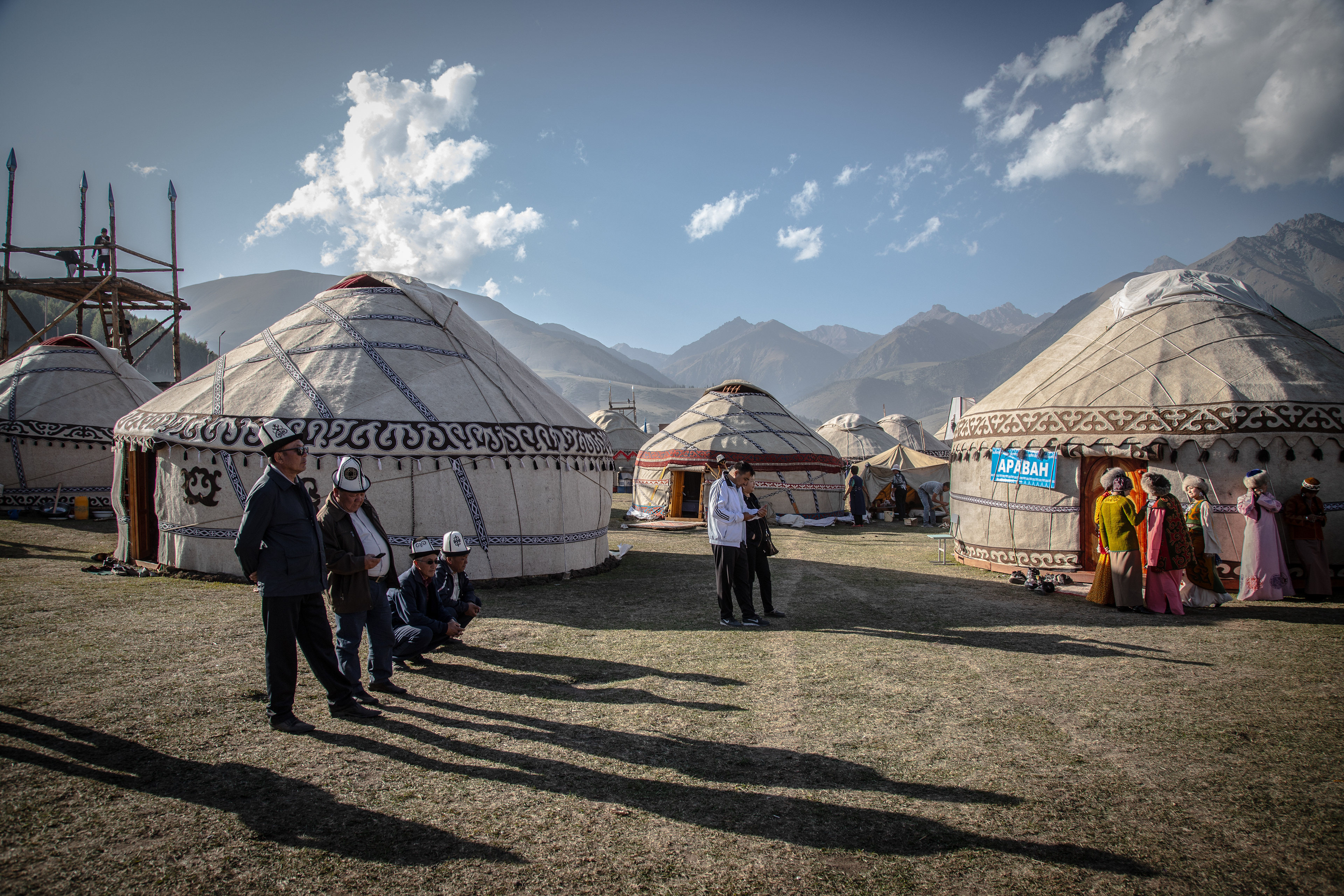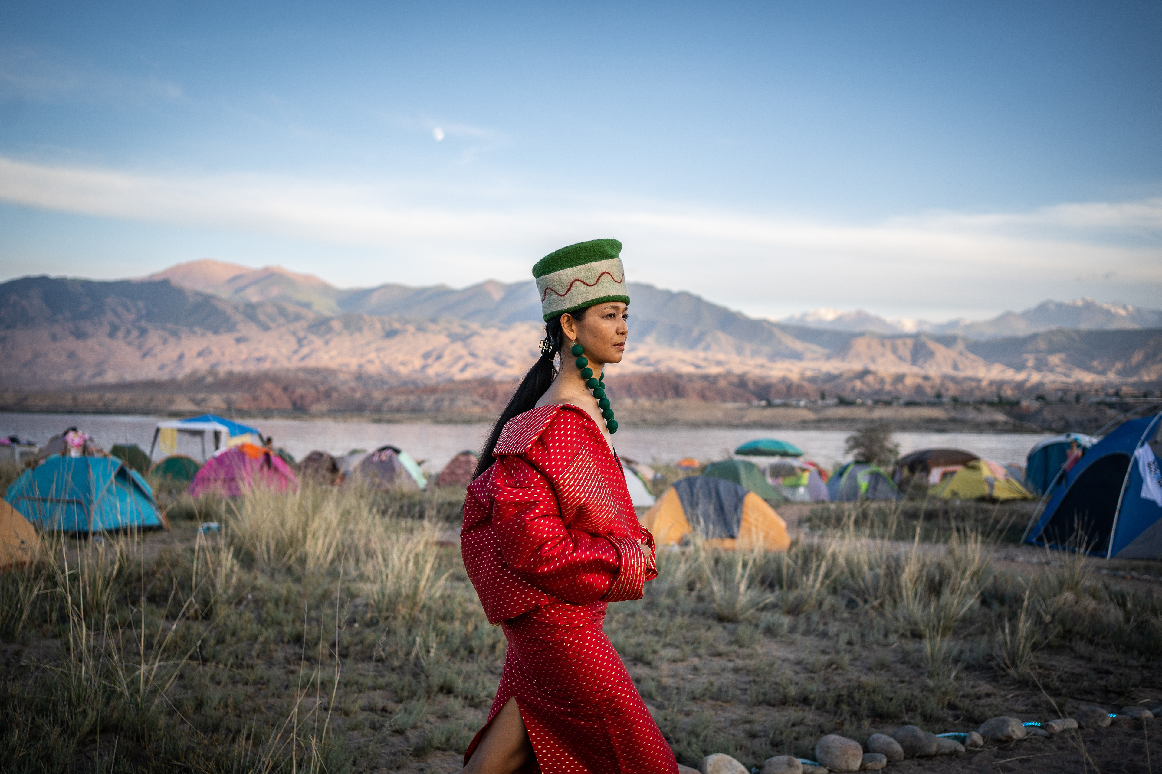 Bezoekers op Kolfest, een 3-daags festival aan het Issykoelmeer. Het festival vindt plaats sinds 2019 en heeft tot doel traditionele aspecten van de Kirgizische cultuur, zoals yurts, kleding en traditioneel eten, te combineren met moderne elementen zoals elektronische muziek. Het is een kans om extravagant te kleden, weg van spiedende en oordelende ogen. In eerdere edities kende het festival botsingen met de lokale bevolking van de omliggende dorpen, die bijvoorbeeld een afkeer hadden van openlijk homoseksueel gedrag en de manier waarop mensen zich kleedden.